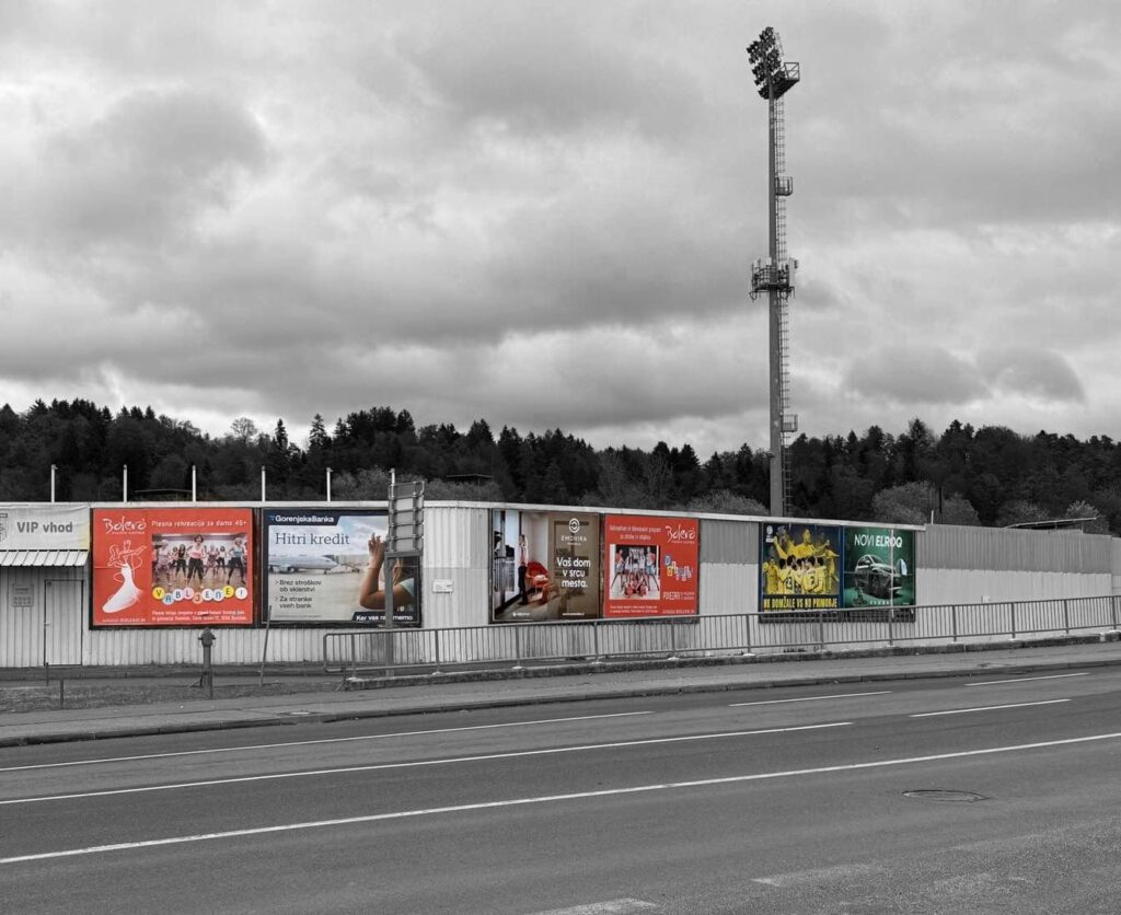 Vsak dan mrgoli voznikov, pešcev in obiskovalcev, ki gredo mimo nogometnega stadiona Domžale in priljubljenega drsališča v domžalskem športnem parku, da ne omenjamo dnevne obiske nakupovalnega centra. Oglaševalski prostor, ki gleda na Kopališko ulico, bodisi za mimoidoče, ki gredo v center Domžal, ali proti avtocesti, po Poti za Bistrico in Krumperški ulici, pa omogoča sijočo odmevnost in zavedanje o dogodkih, dejavnostih in posebnih priložnostih.