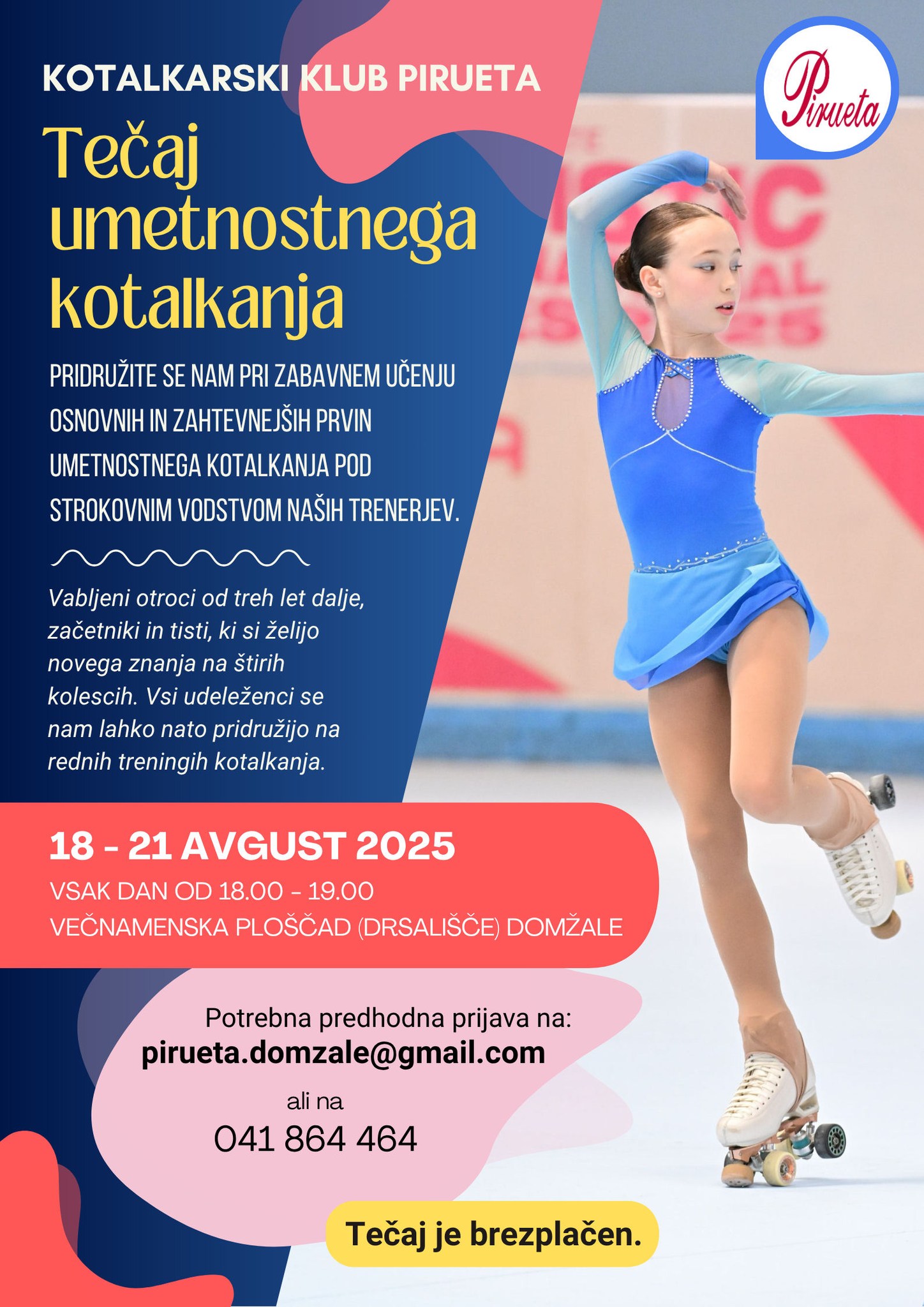 Pridružite se nam pri zabavnem učenju osnovnih in zahtevnejših prvin umetnostnega kotalkanja pod strokovnim vodstvom trenerk kotalkarskega kluba Pirueta Domžale.